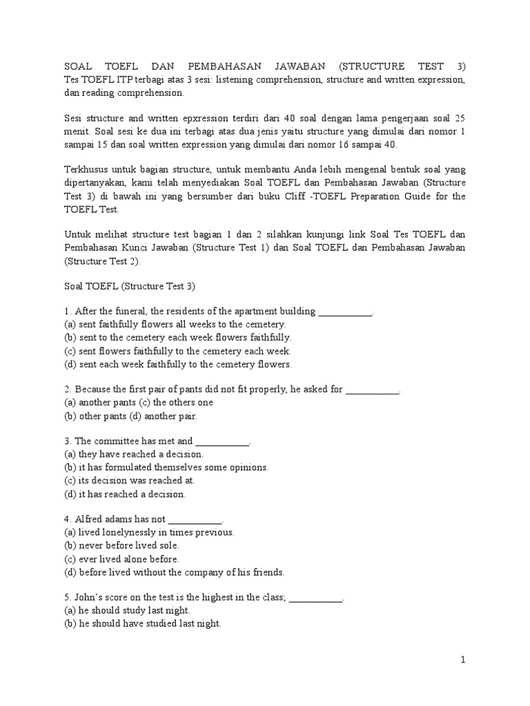 Contoh Soal Toefl Written Expression Dan Pembahasannya Pdf