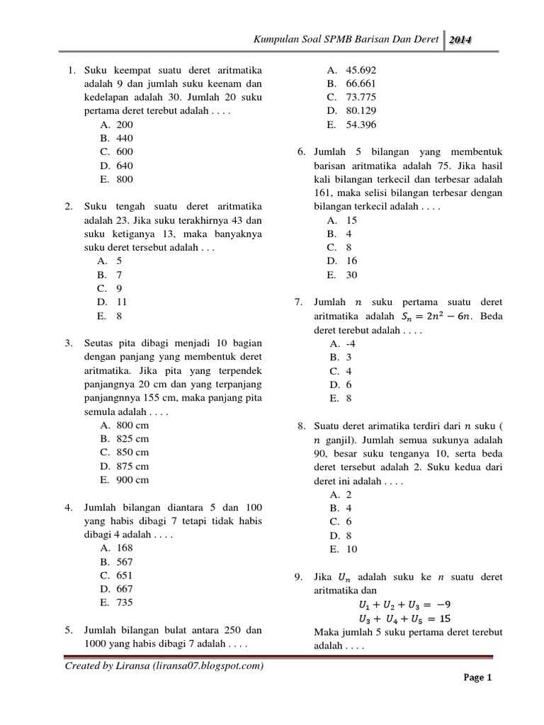 Kumpulan Soal Barisan Dan Deret by Liransa