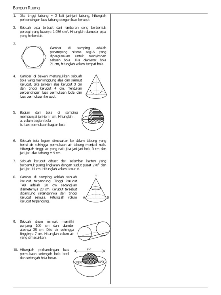 Contoh Soal Bangun Ruang Tabung, Kerucut dan Bola Kunci Jawaban.