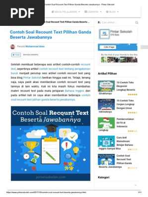 Contoh Soal Recount Text Pilihan Ganda Beserta Jawabannya Pintar Sekolah Pdf