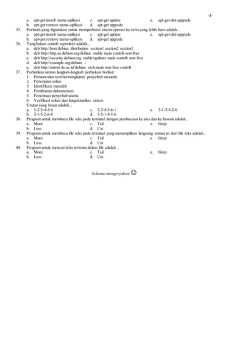 Soal Uas Sistem Operasi Jaringan Kelas 11 Semester Genap Tahun Ajaran